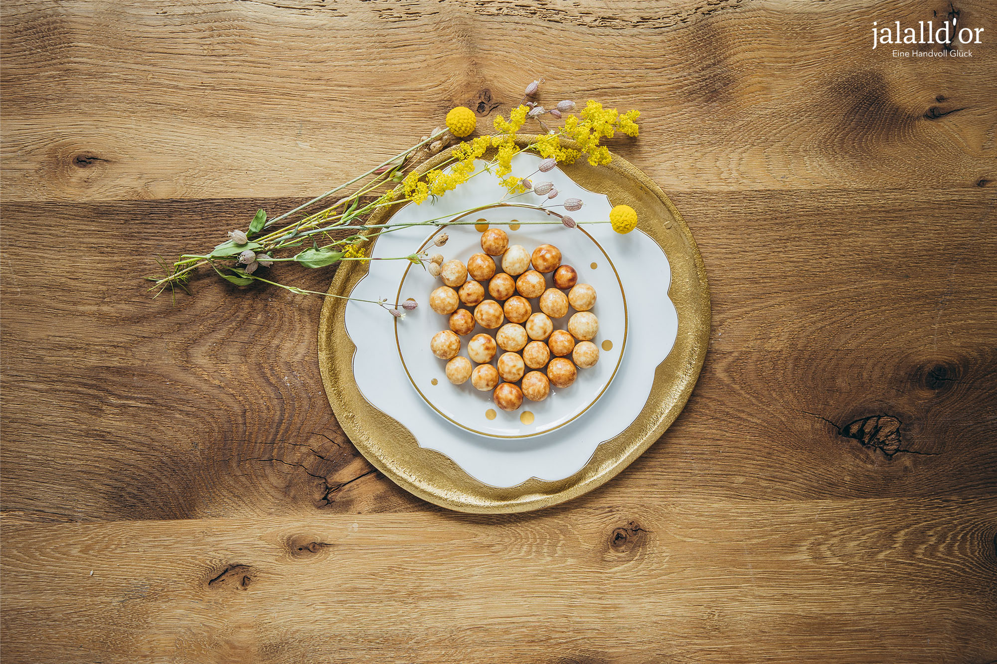 Meine Vision, Jalall D’or zum Wohle aller zu betreiben, spürst Du hoffentlich in jedem Produkt – für unsere Kunden, für unsere Mitarbeiter*innen, für unsere Lieferanten, für unsere Partner*innen – ein Begegnen auf Augenhöhe mit viel Liebe, dafür stehen wir mit voller Überzeugung. Das macht mich glücklich und so hat es der Slogan „Eine Handvoll Glück“ bis zu Dir geschafft. Wir freuen uns auf die Zeit mit Dir!