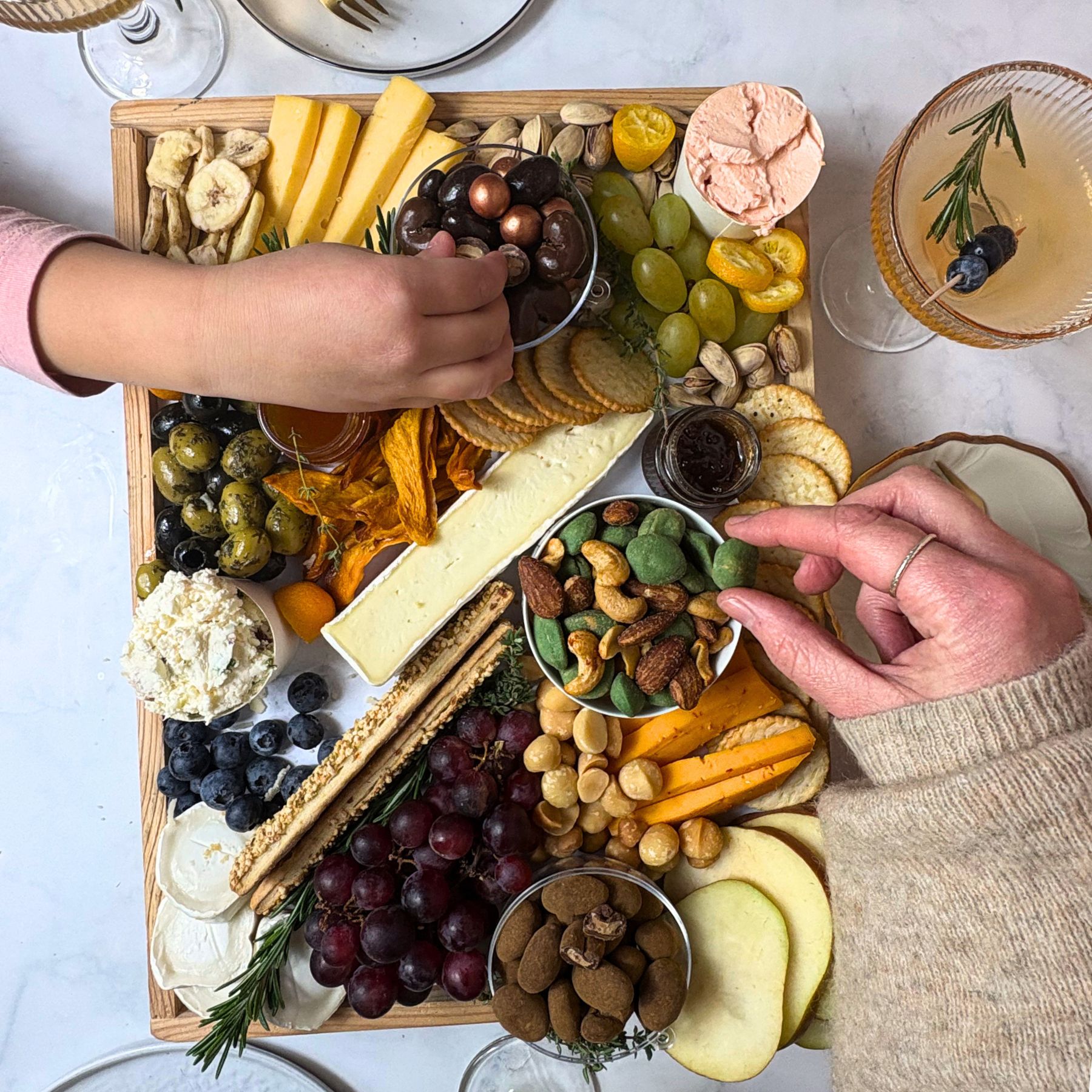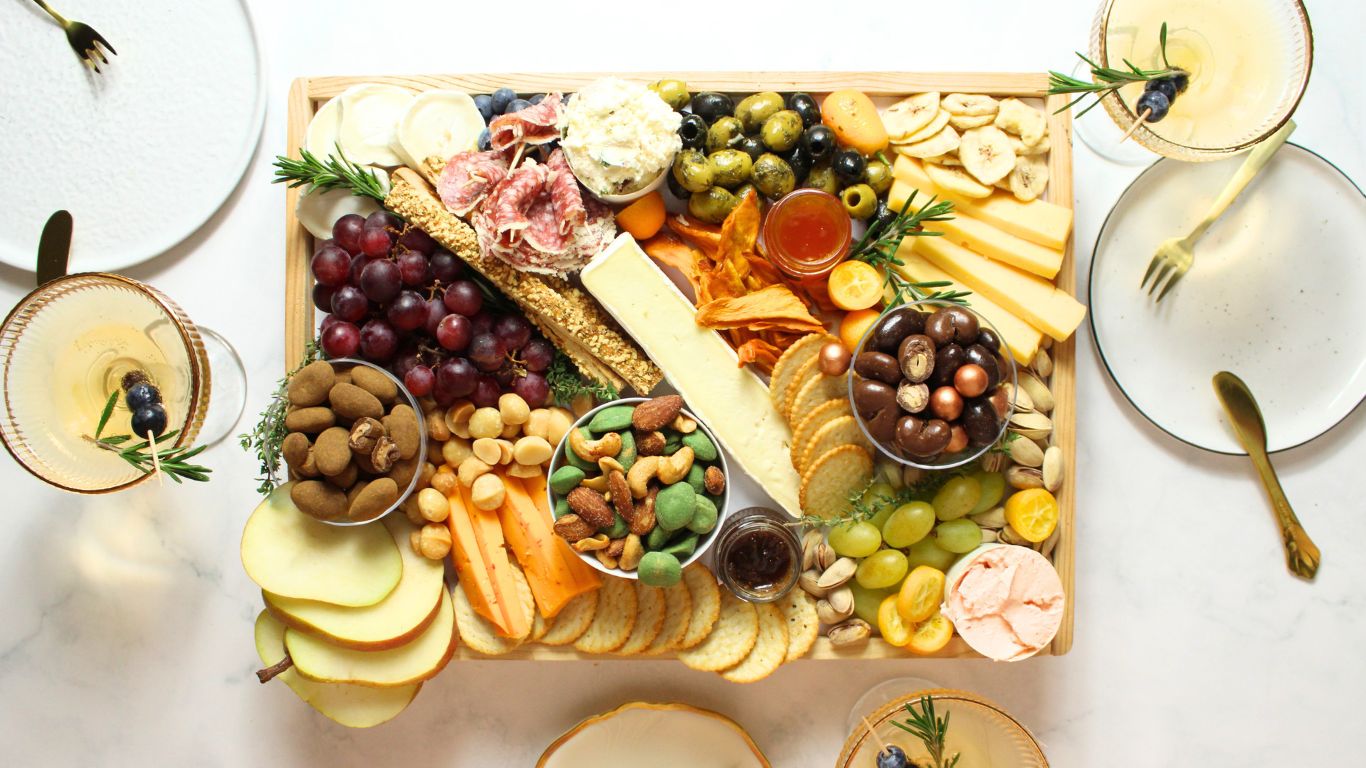 Weintrauben, Birnenscheiben und Oliven lockern alles auf und passen perfekt zu Käse.