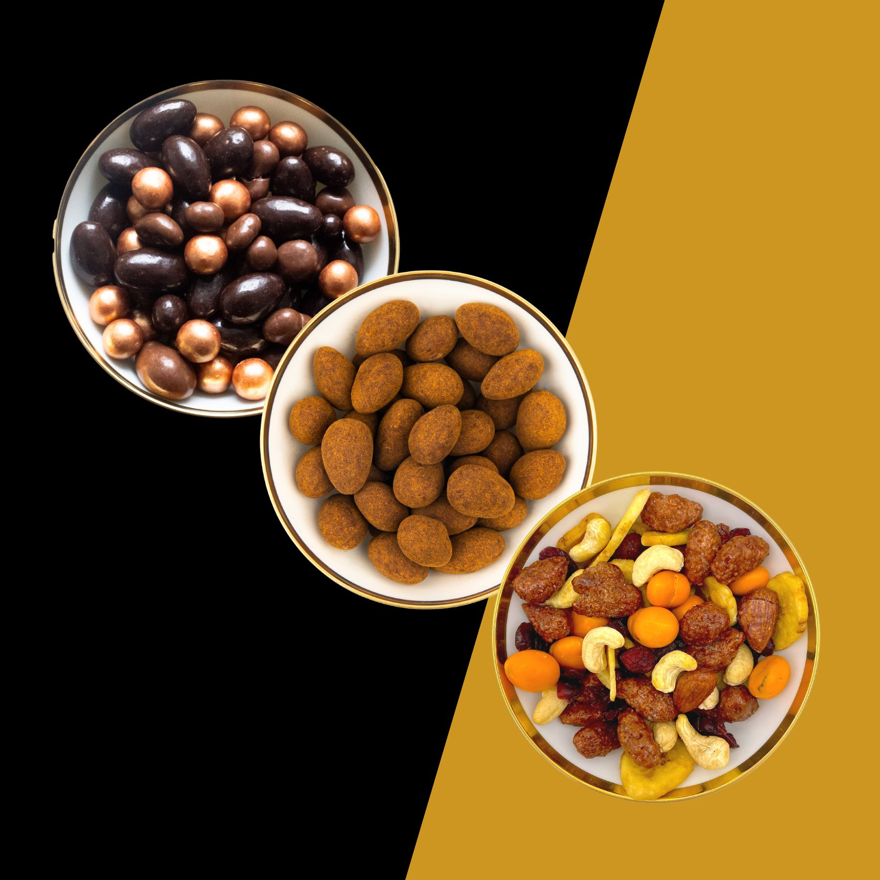 Dreimal anders, dreimal besonders: Unser Nuss-Bundle vereint drei köstliche Jalall D’or Klassiker in einem Set – perfekt zum Probieren, Verschenken oder gemeinsamen Genießen. Cashewkerne Rosmarin – zart geröstet, fein gewürzt, mediterran im Geschmack. Rauchmandeln – kräftig, herzhaft und mit ihrem rauchigen Aroma ein echtes Highlight zu Wein oder Bier. Cashewkerne Curry – mild-würzig mit exotischer Note – ein Snack mit Charakter. Das praktische 3er-Set ist ideal für alle, die Abwechslung lieben und neue Lieblingssorten entdecken möchten. Ob als Geschenk für Feinschmecker, als Snack-Trio für den Abend mit Freunden oder als edle Beigabe zu einem Weinpräsent – dieses Bundle steht für puren Jalall-D’or-Genuss: köstlich, kreativ und voller Liebe zum Detail.