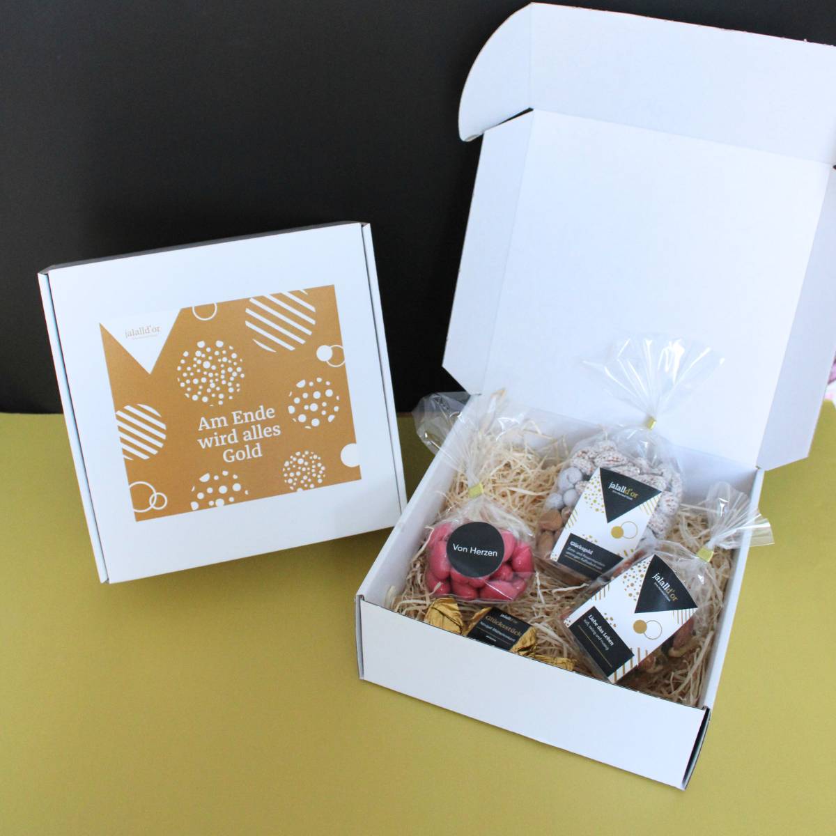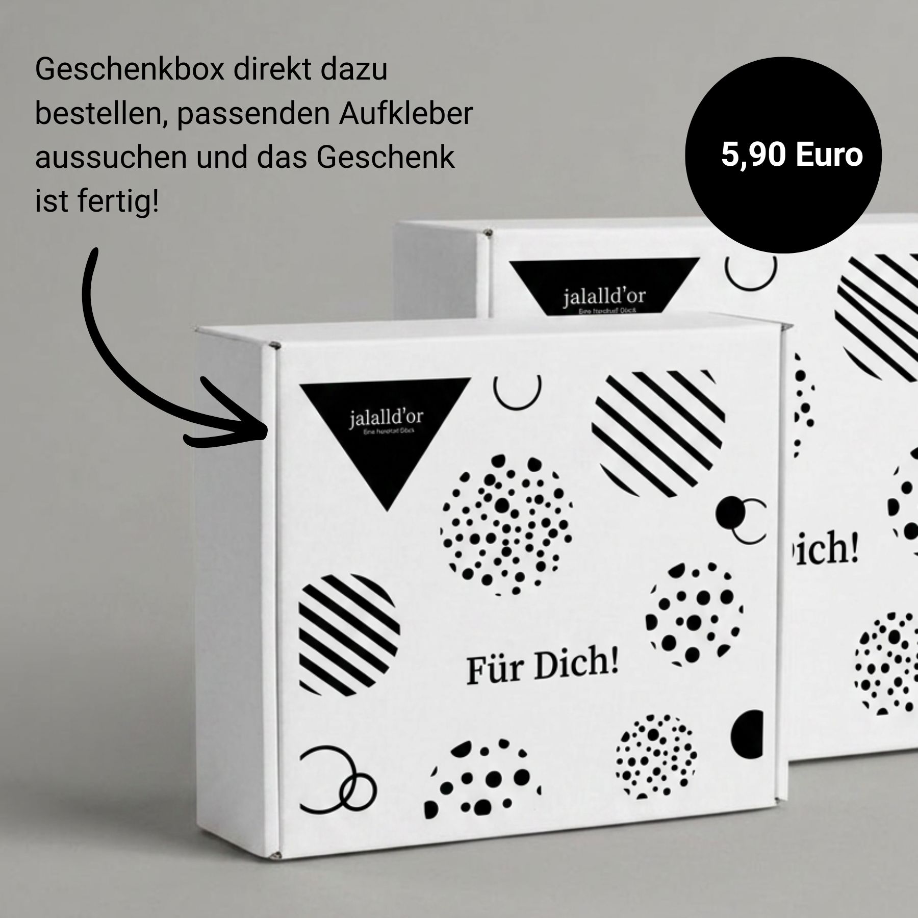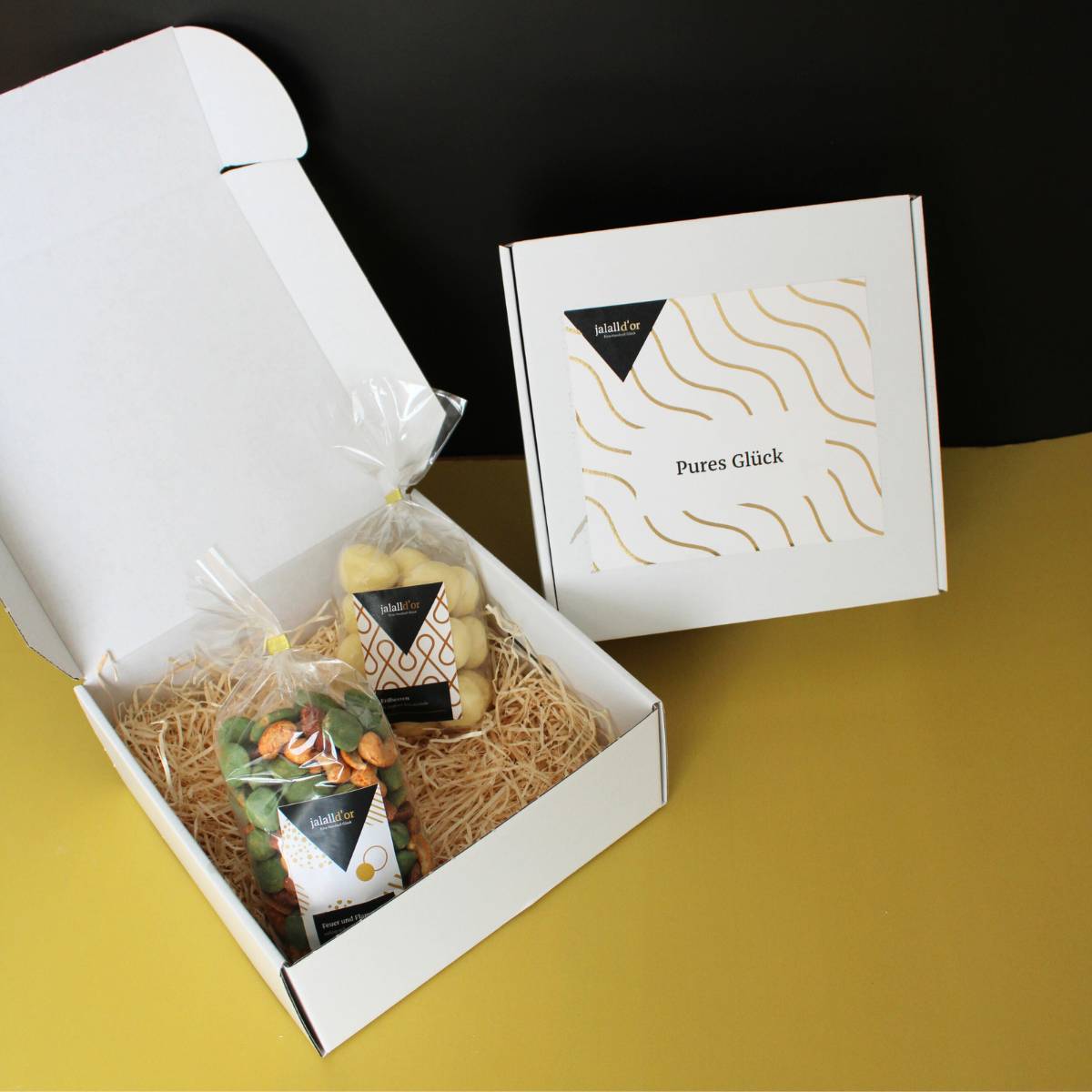 Wie wäre es mit einem Geburtstagsgeschenk oder Einer Handvoll Dankbarkeit? Dafür haben wir von Jalall D’or wundervolle Geschenkboxen und -dosen mit verschiedenen Botschaften kreiert. Sie sind eine schöne Möglichkeit zu zeigen, dass Dir Deine Mitarbeiter am Herzen liegen und Du ihren Einsatz über die vergangene Zeit wertschätzt.