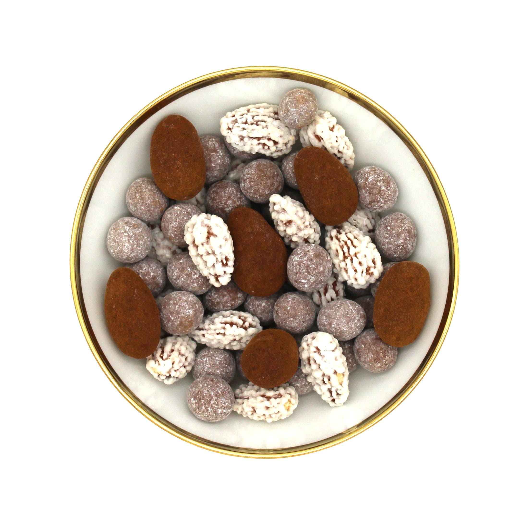 Auch zur Weihnachtszeit sind wir besonders kreativ bei der Zusammenstellung von abgestimmten Mischungen aus Trockenfrüchten und Nüssen. Wie wäre es mit einer Handvoll Dankbarkeit oder Weihnachtszauber mit Zimtmandeln in Vollmilch-Schokolade?