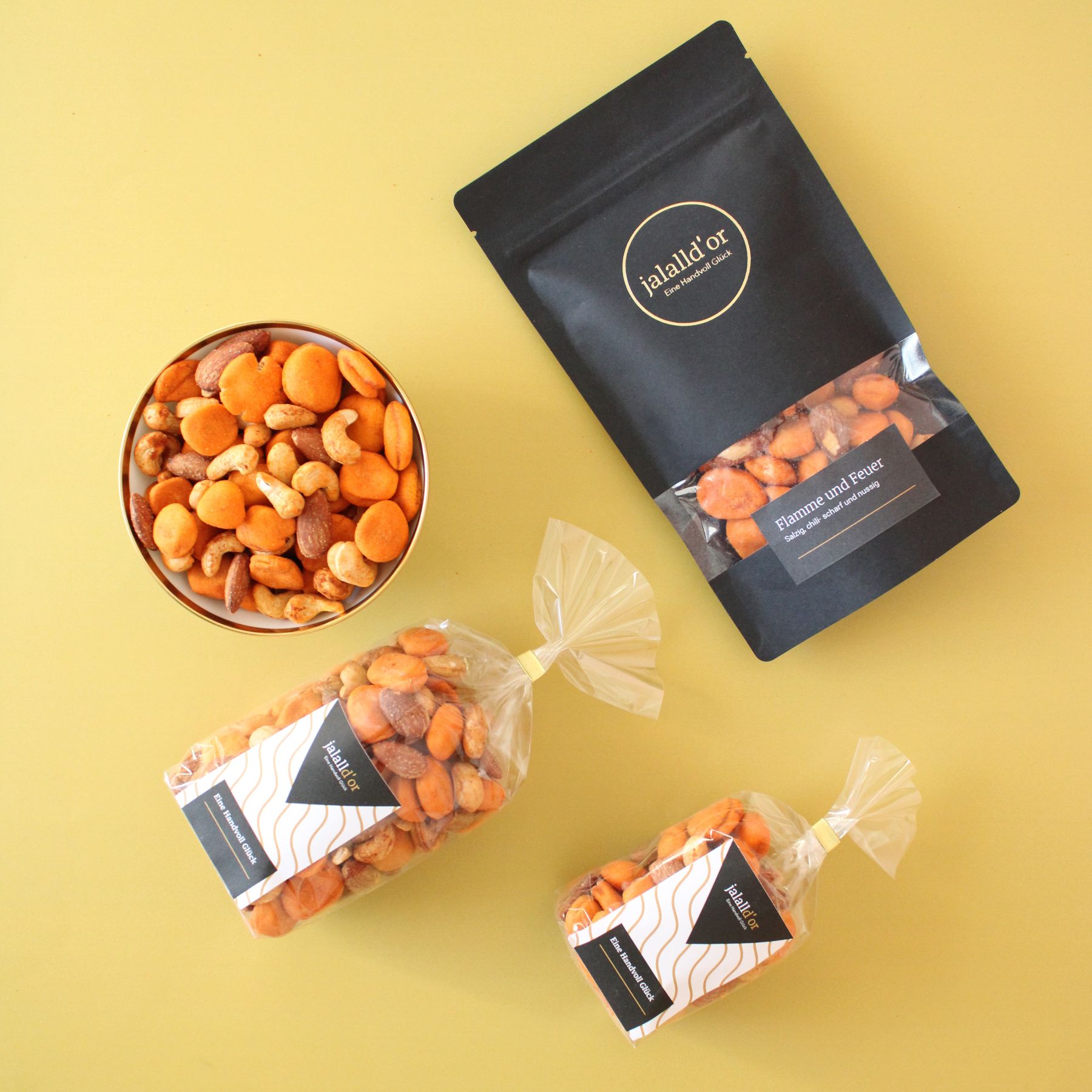 Für alle, die es gern feurig mögen, haben wir nach Feuer & Flamme unsere zweite scharf-salzige Nussmischung zusammengestellt. Flamme & Feuer ist dabei eine leidenschaftliche Komposition für echte Chili-Fans. Knackig, würzig und angenehm scharf – diese Mischung bringt Hitze, Tiefe und ganz viel Geschmack in jeden Snackmoment.