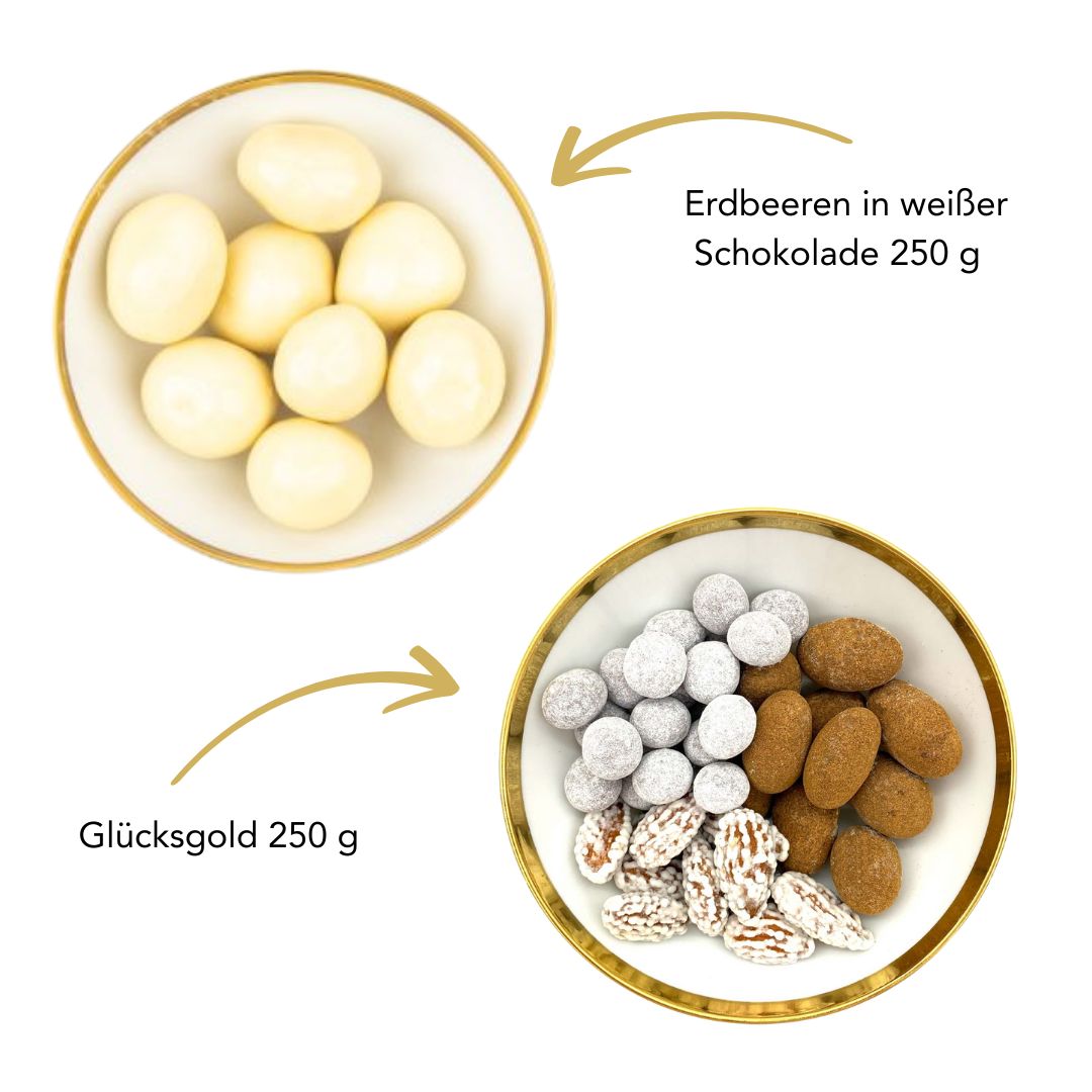 Unsere Geschenkbox Glücksmoment ist das perfekte Präsent, um solche Augenblicke zu feiern und zu versüßen. Mit feinen Leckereien entsteht ein kleines Stück Glück, das zeigt: Dieser Moment gehört Dir – genieße ihn in vollen Zügen!