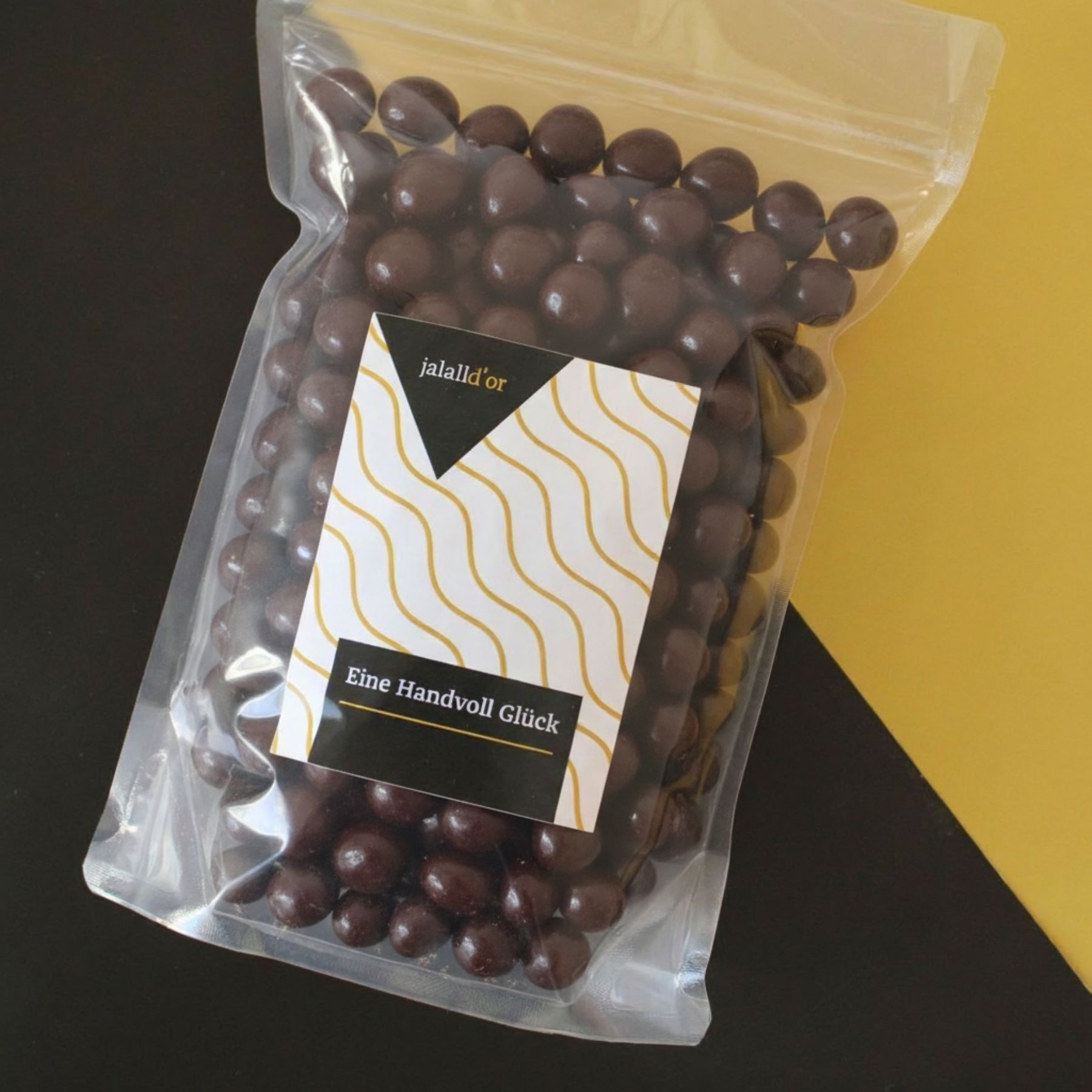 Glücksgold: Mischung aus Nusskernen und Kaffeebohnen, teilw. gezuckert, teilw. schokoliert