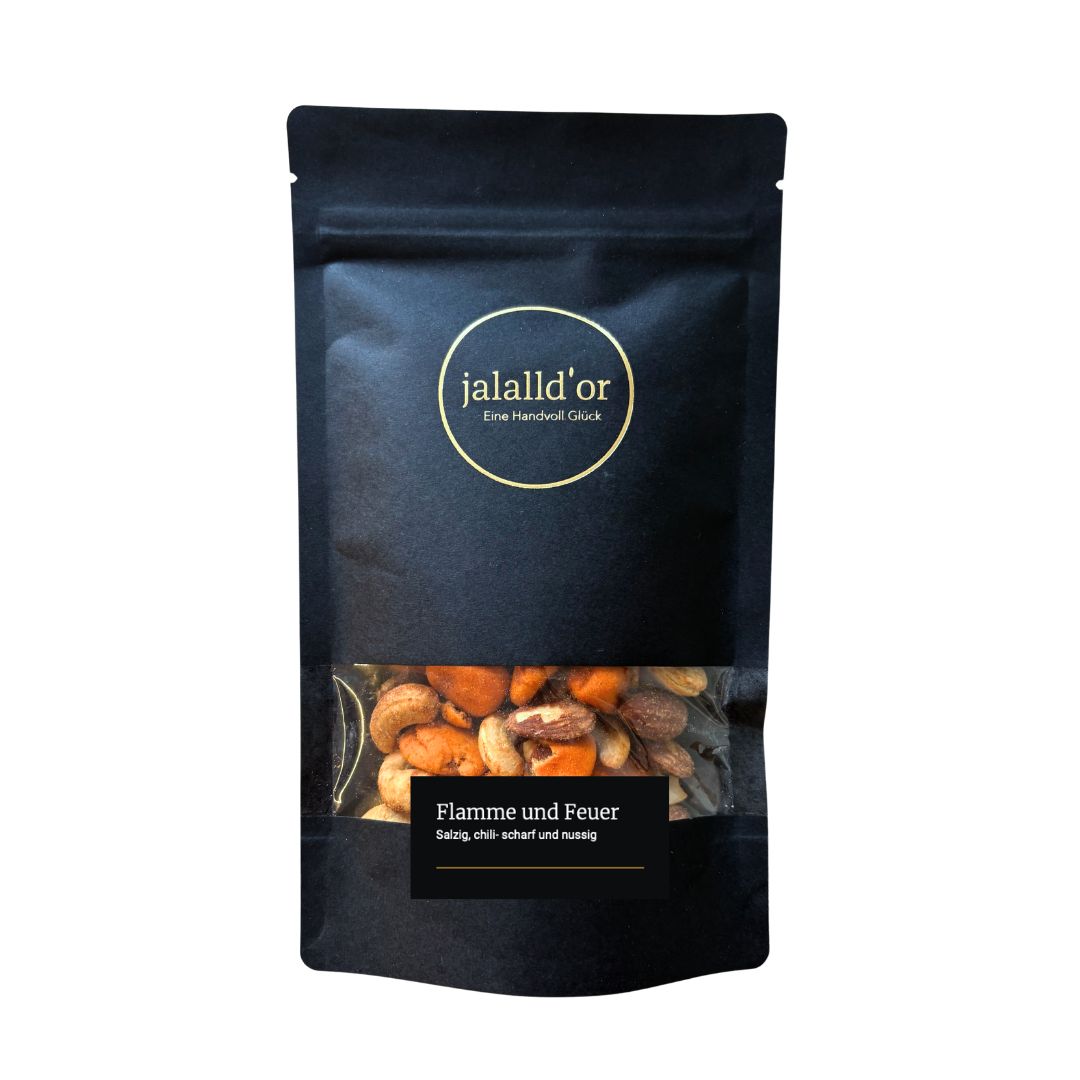 - Feuer und Flamme: scharf-salzige Nussmischung mit Wasabi-Erdnüssen, Chili-Cashewkernen und Salzmandeln